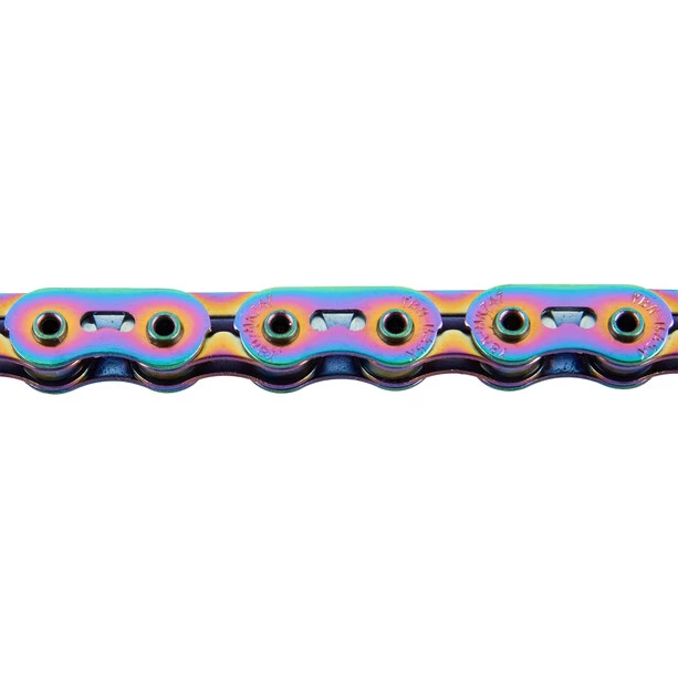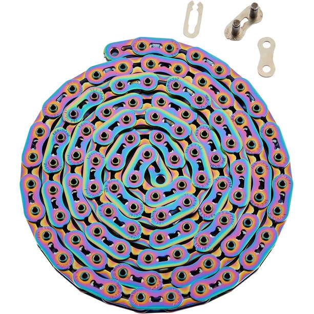 Le Dartmoor Core Lite. Une chaîne légère pour singlespeed nickelée avec des axes creux et des plaques percées.