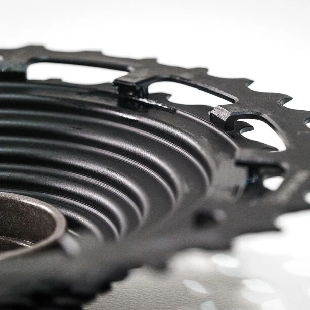La construction en deux pièces permet le remplacement individuel des pièces d’usure. Si vous prévoyez construire votre nouveau vélo avec un Eagle drive, ou si votre Eagle drive actuel vient de faire son apparition, pensez à économiser du poids et de l’argent sans économiser sur l’autonomie avec la cassette 12 vitesses TRS Plus de e*thirteen.