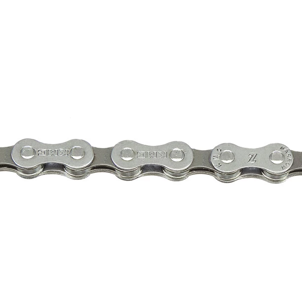 La chaîne KMC Z7 est compatible avec tous les dérailleurs Shimano, Campagnolo et SRAM 6.7 vitesses et est conçue pour un usage en ville et en tournée. Il a un aspect gris-brun frais et n’est pas directionnel.