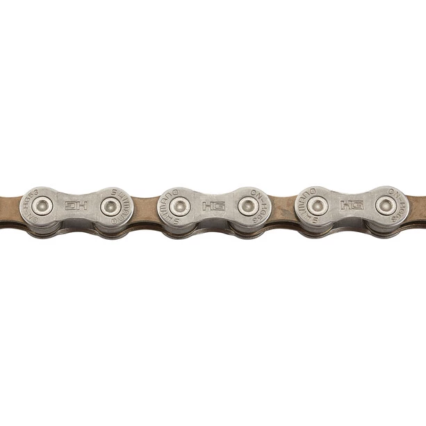 La chaîne transmet la force du plateau au pignon du moyeu arrière. Elle est exposée à des charges et à des conditions climatiques extrêmes. Les chaînes de vélo s’allongent à des vitesses différentes selon les conditions d’utilisation, mais chaque chaîne doit être remplacée tôt ou tard. Remplacer la chaîne à temps est le seul moyen de protéger les plateaux et les pignons d’une usure excessive. Pour tirer les meilleures performances possibles du système HyperDrive Shimano, il est important d’opter pour des chaînes Shimano HG d’origine.