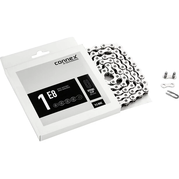 Avec ses sangles renforcées, le 1E8 convient aux vélos électriques à moyeu large. Un nombre plus élevé de maillons permet de s’adapter facilement à n’importe quelle longueur de chaîne.