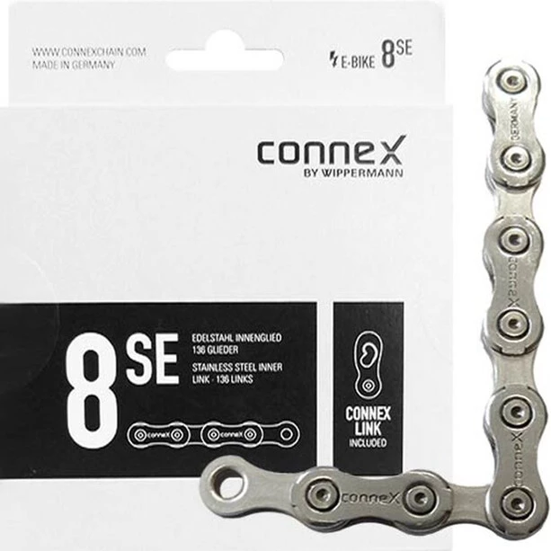 Le 8sE offre une excellente protection contre la corrosion et une durabilité maximale. Ceci garantit une plus grande surface d’articulation du maillon intérieur en acier inoxydable. Cette chaîne de vélo électrique s’adapte parfaitement à toutes les chaînes de dérailleur à 8 vitesses ainsi qu’aux dérailleurs à moyeu étroit.